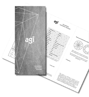 Our flagship product, the agi Diamond Grading Report is an A4 sized certificate with full details of the Carat, Colour, Clarity and Cut of the diamond including the measurements, fluorescence and an accurate plotting of the inclusion, which make the grade, on a facet diagram.